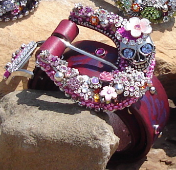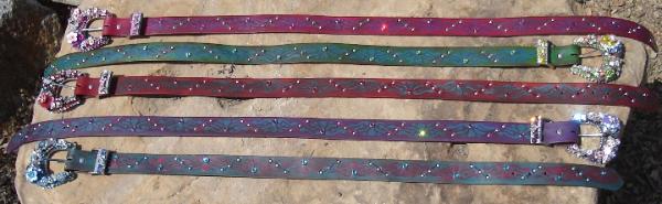 | Spooles Forsaken Skull Buckles™ These buckles are handcrafted no two are alike Skull: Handcrafted and each are adorned differently Eyes are inlayed with Swarovski ®Crystals Buckles pictured are a representation of what we have in stock Attached Belt: Hand Painted and then distressed Handset with Swarovski ® Crystals and Studs |