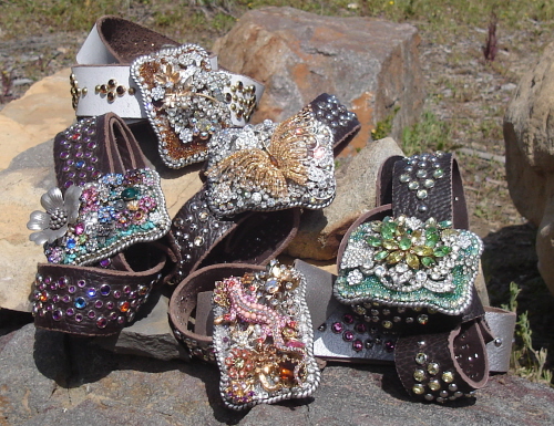 | Spooles Razzel Dazzle Buckles™ These buckles are made with vintage jewelry and no two are alike. The majority of vintage jewelry Spooles uses on these buckles are signed pieces, which adds to there originality and beauty. Buckles pictured are a representation of what we have in stock. All buckles are one of a kind. |