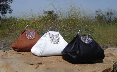 | Spooles Leather Butterfly Purse/Clutch One tab on either side of clutch Each tab is studded and handset in Swarovski ® Crystals Available in: Distressed Brown Leather, White Leather, and Black Leather. Attributes: Purse zips close with a heavy-duty zipper Inside: Zipper pocket, cell phone pocket and one additional |